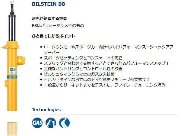 | Bilstein B8 ハイパフォーマンスショック | ||||||||||||||||||||||||||||||||||||||||||||||||||||||||||