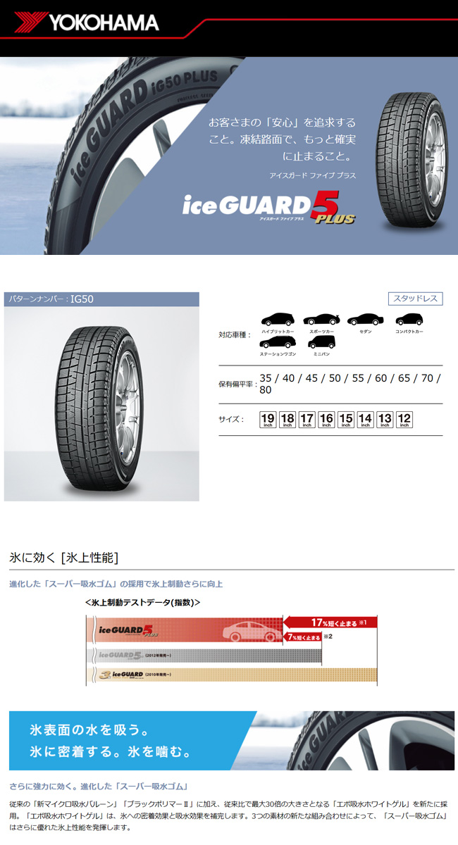| ヨコハマ ice GUARD5 アイスガード IG50プラス スタッドレス スタッドレスタイヤ |
