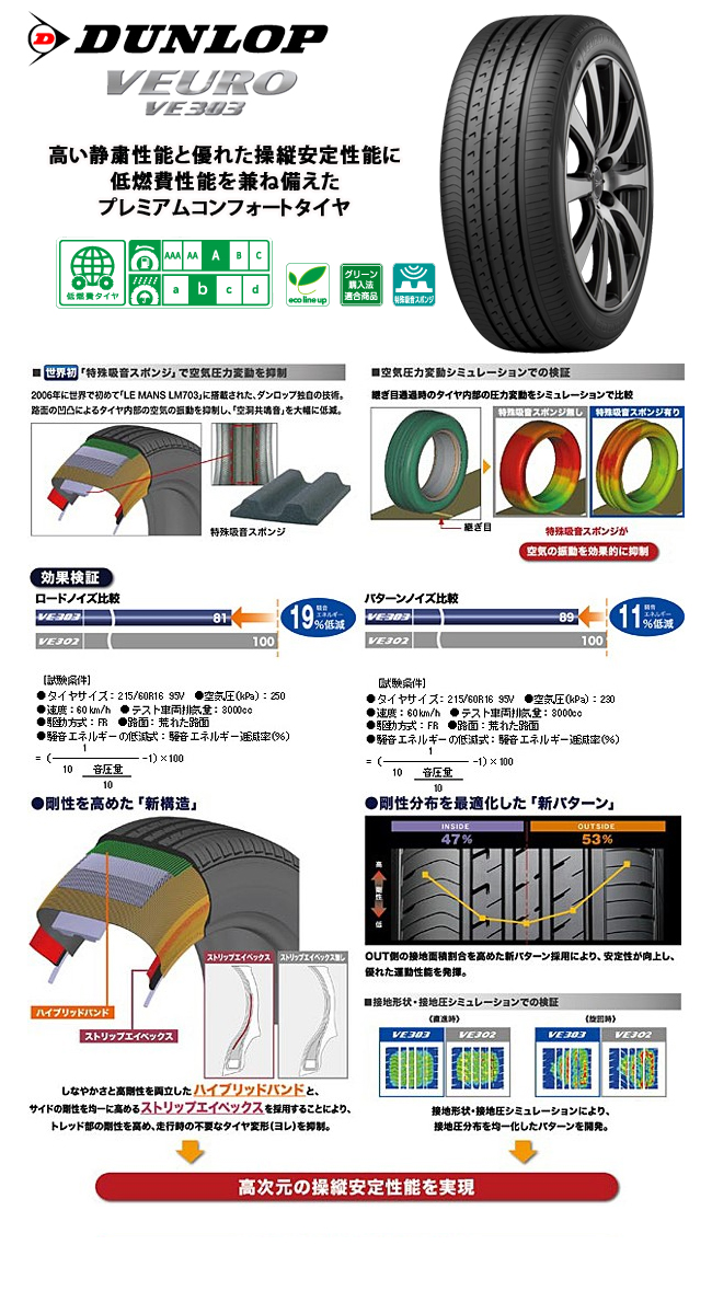 | ダンロップ VEURO VE303 ビューロ サマータイヤ |