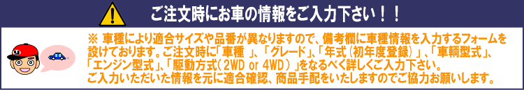 | 【注意事項】 | 御注文をいただける際には装着可否もございますので装着予定の車種、グレード、年式、型式、をご入力下さいませ。 ● 通信販売お取扱店舗 矢東タイヤ杉並店(TEL:03-3247-3811) お電話でのお問い合わせは上記店舗宛てにお願いします。 ※ こちらの商品は代金引換でのお支払いはお承りしておりません。代金引換以外のお支払い方法をご選択下さい。 ● 店頭にご来店頂いての取付作業も可能です。作業工賃は別途発生します。詳しくは各店舗へと直接お問い合わせ下さい。 <車検対応について> 製品のご使用はユーザー様の責任において道路運送法の保安基準の合致内容をご理解の上ご使用ください。 ※掲載写真は商品イメージです。サイズ、仕様により現品と異なる場合がございます。 |