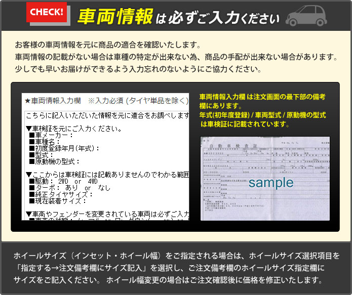 | ホイールカラー ホイールサイズ 車両情報 |