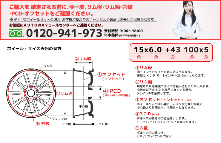 | 注意事項 | ※ご利用規約:ご注文前に必ずご確認ください 【注】ナット・ボルト等は付属しておりません。市販のものをご使用下さいませ。 (MOMOホイールを除く) 【注】ローダウン等車体を改造されている場合は装着出来ない場合がございますのでご注意下さい。 【注】決済方法は、お振込みもしくは、クレジットカードのみとなります。 ※納期は1週間〜10日前後かかる場合がございます。 ※純正ナットで装着可能な場合もありますが、市販のナットや、薄口アダプターを必要とする場合もございます。 ※送料・組込料込み(バランスはサービス)の価格になります。 |